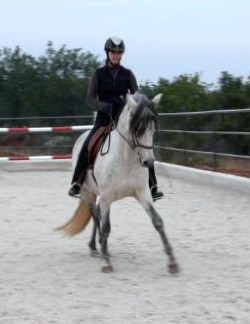 Reitunterricht Silke Sollik Ich lege sehr viel Wert auf eine fundierte, feinfühlige Ausbildung und einen pferdegerechten fairen Umgang mit den Pferden. Dieses Wissen gebe ich auch gern an meine Reitschüler weiter. Die Pferde sind sehr gut ausgebildet und leichtrittig und vermitteln ein wunderbares Gefühl der "Verschmelzung" von Mensch und Pferd. Ob Unterricht in feiner Dressur nach klassischen Grundsätzen oder Kinderreitunterricht. Vom Anfänger bis zum Fortgeschrittenen sind alle Schüler willkommen. Um auf den Reitschüler individuell einzugehen und ihm die grösstmögliche Aufmerksamkeit zukommen zu lassen, unterrichte ich nur in Einzelstunden. Hispano im Galopp mit Reitgast | |  | | | Huero in der Trab-Traversale mit Reitgast |